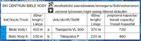 Lyžiarske stredisko BIELE VODY má dva lyžiarske vleky so zjazdovou traťou vhodnou pre menej náročných lyžiarov, mechanické zasnežovanie a prevádzkuje i večerné lyžovanie.