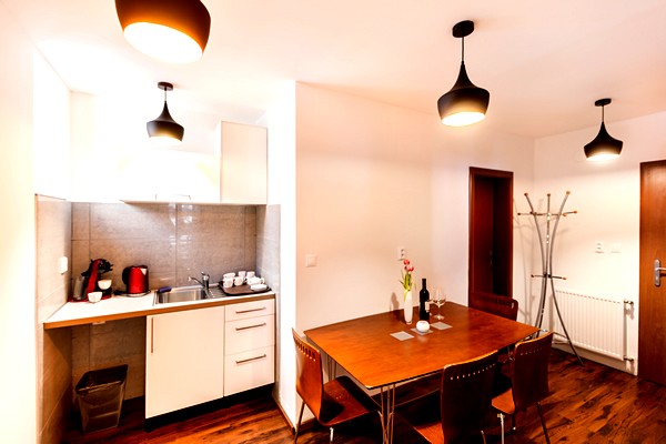 Apartmány sa nachádzajú v blízkosti hotela cca 5 m. Apartmány 2 x manželská posteľ, +1 lôžková posteľ; 1 x manželská a 3 x jednolôžková posteľ; 1 x manželská posteľ + 2 x jednolôžková posteľ a rozkladací gauč. Apartmány sú s vlastnou kúpeľňou, toaletou, TV so satelitným príjmom, pracovným stolom, telefónom, budíkom. V niektorých apartmánoch sú balkóny, terasy, kuchyňa alebo kuchynka s jedálňou a obývacou izbou. V kuchyňa obsahuje: chladnička, rýchlovarnú kanvicu, kávovar, riad, elektrickú dvojplatničku, mikrovlnú rúru. V kúpelní je fén na vlasy. K dispozícií je altánok pre 20 osôb. K dispozícií je parkovisko pred objektom.