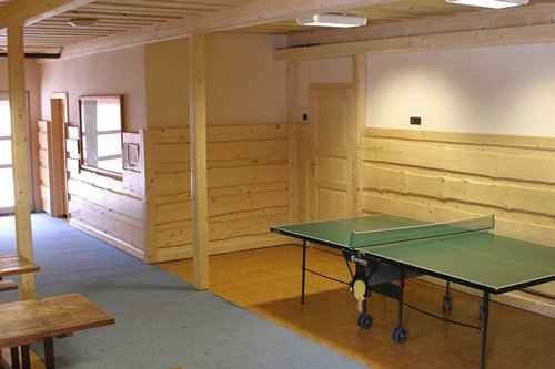 Spoločné sociálne zariadenia, spoločenská miestnosť s televízorom, jedáleň s barom a biliardom, stolný futbal, stolný tenis, sauna, fitness, futbalové a volejbalové ihrisko, posedenie pri ohni.